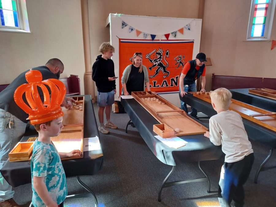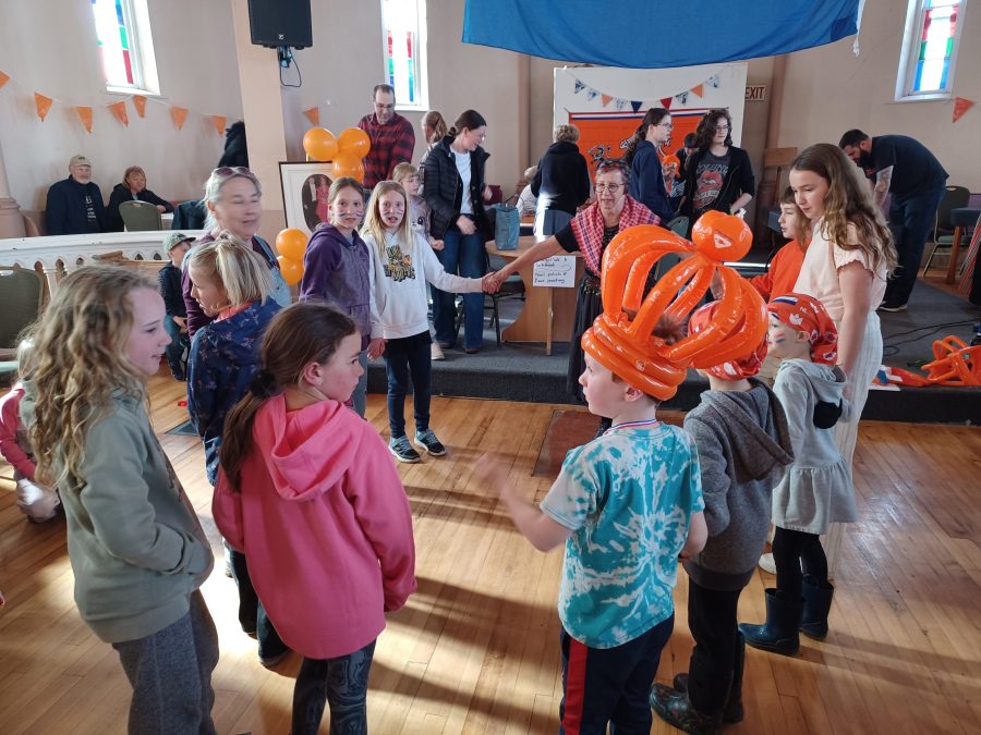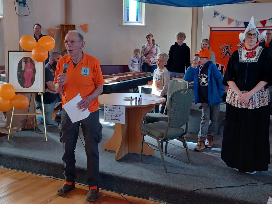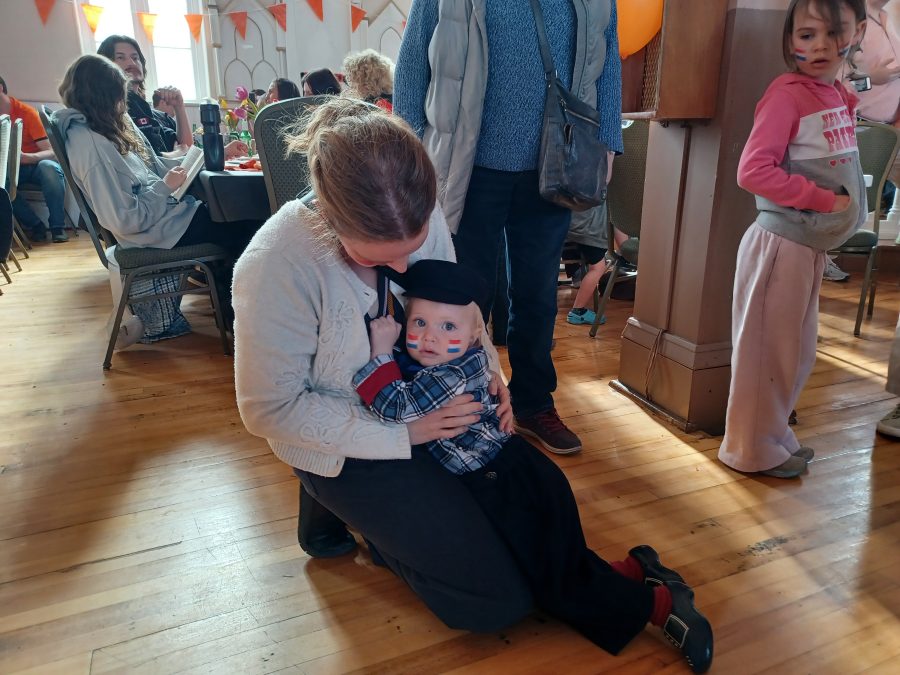 A Koningsdag (King’s Day) celebration was held at the Lochiel Centre on Saturday, April 25. The event included Dutch specialty foods including the amazing beef or chicken kroketten (croquettes), erwetnsoep (pea soup), and tompouce, a Dutch variation of mille feuille. Dutch games were enjoyed, particularly by children, including the challenge of eating a piece of cake suspended from a string. There was also an opportunity to try traditional Dutch clog dancing.