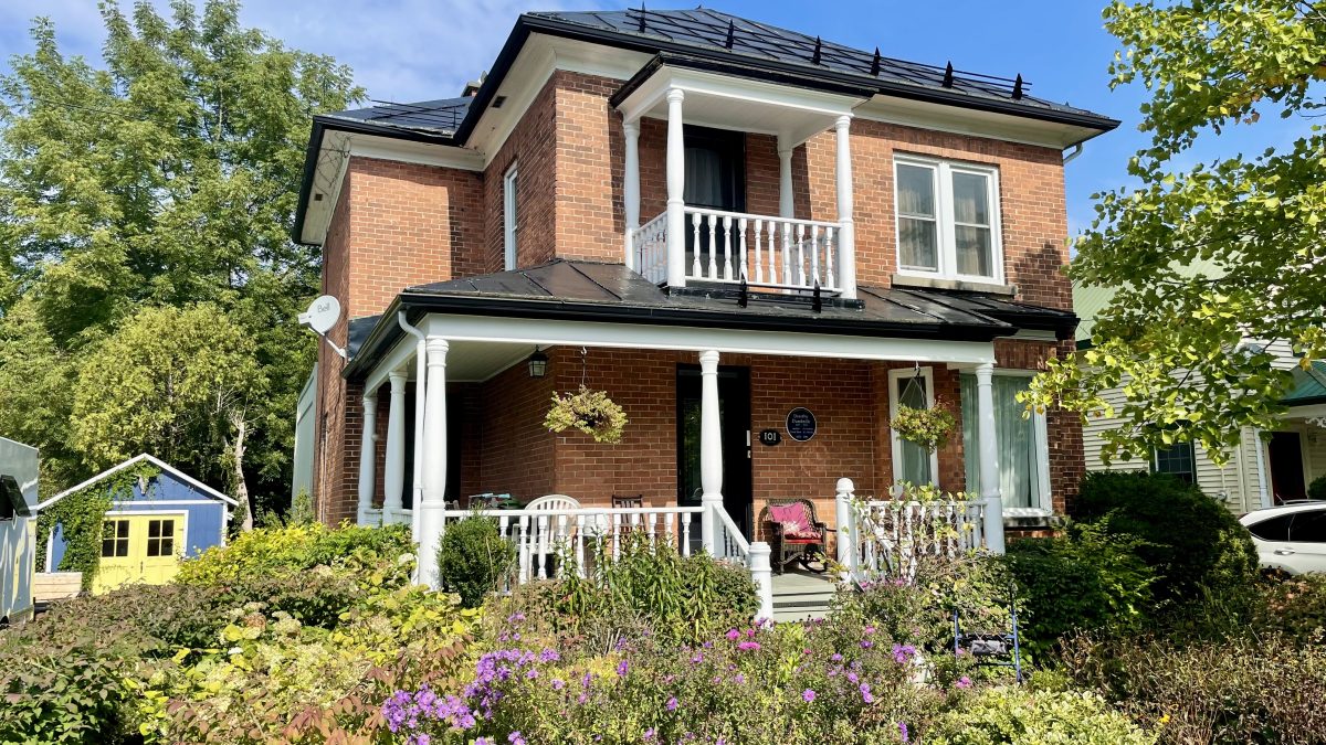 The late Victorian-style home featuring red brick, stain-glass windows, and ornate woodwork at 101 Centre Street was built in 1906. Serving as the former residence of author Dorothy Dumbrille between 1925 and 1981, the home shares historical history with the community. Dumbrille published several poetry collections, Deep Doorways (1941), and All This Difference (1945) while residing there.