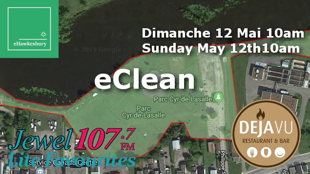 You are invited to join eHawkesbury, an eClean volunteer group in cleaning up Cyr Park May 12th at 10am. This eClean is sponsored by Deja Vu Restaurant & Bar at 882 Main St E in Hawkesbury who will be giving you a $10 gift certificate, redeemable at Déjà vu, in exchange for a few of your volunteer hours. Volunteering is one of the most rewarding and charitable acts one can perform.