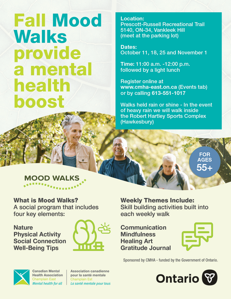 Register online at www.cmha-east.on.ca (Events tab) or by calling 613-551-1017.