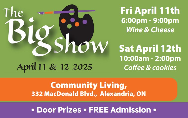 Community Living Glengarry 332 MacDonald Blvd, Alexandria, Ontario, CanadaFri April 11th, 6:00pm - 9:00pm, Wine & Cheese Sat April 12th, 10:00am - 2:00pm, Coffee & cookies Door Prizes and FREE Admission