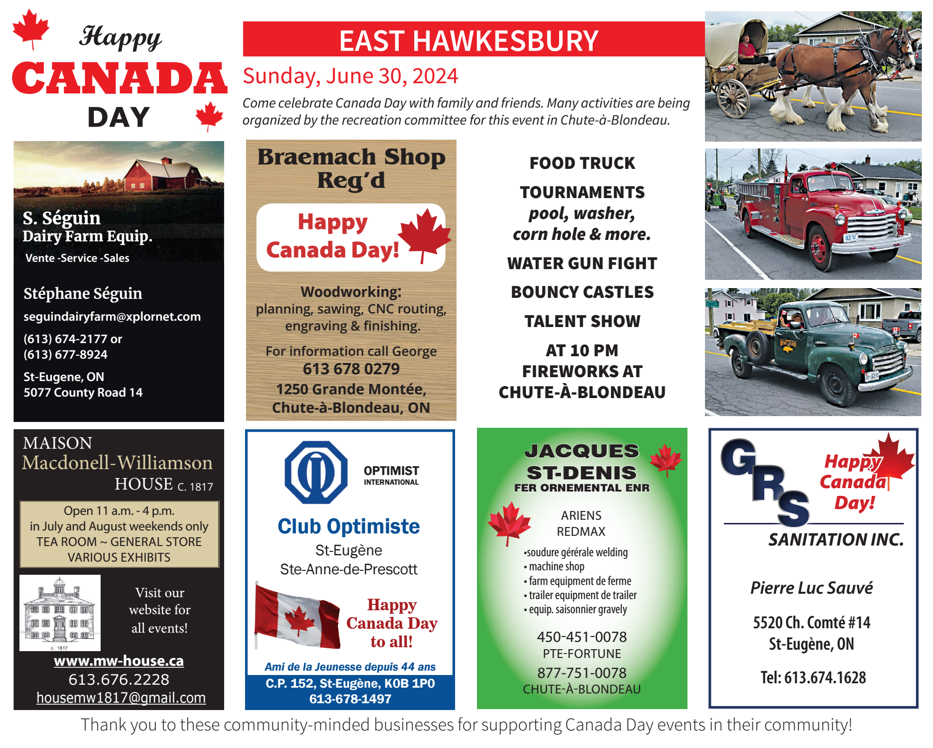 Come celebrate Canada Day with family and friends. Many activities are being organized by the recreation committee for this event in Chute-à-Blondeau. FOOD TRUCK TOURNAMENTSpool, washer, corn hole & more.WATER […]
