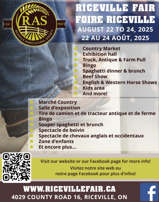 Country Market, Exhibition hall, Truck, Antique & Farm Pull, Bingo, Spaghetti dinner & brunch, Beef Show, English & Western Horse Shows, Kids area, and more! Marché Country, Salle d’exposition, Tire de camion et de tracteur antique et de ferme, Bingo, Souper spaghetti et brunch, Spectacle de boivin Spectacle de chevaux anglais et occidentaux, Zone d’enfants, […]