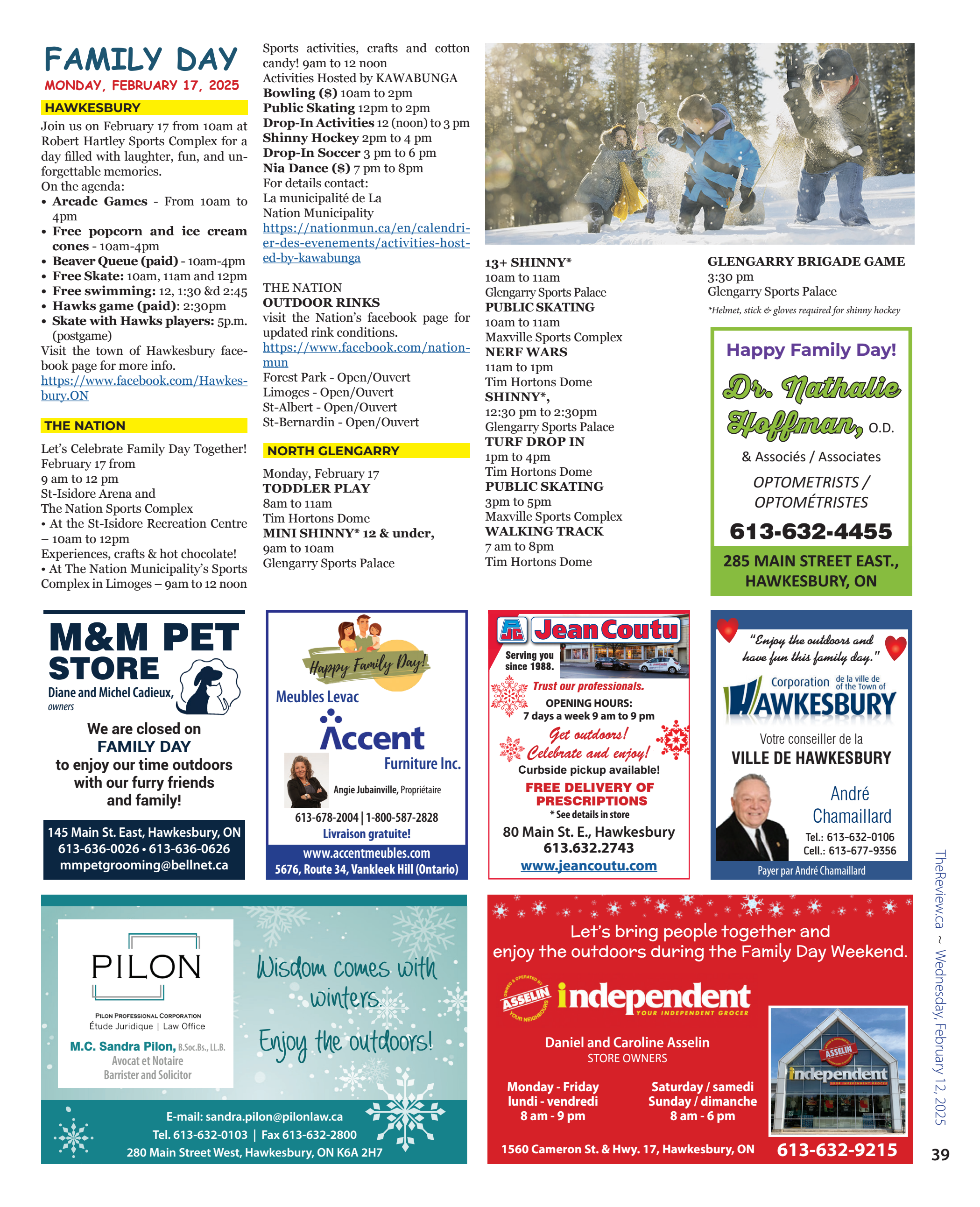 HAWKESBURY Join us on February 17 from 10am at Robert Hartley Sports Complex for a day filled with laughter, fun, and unforgettable memories. On the agenda: Arcade Games - From 10am to 4pm Free popcorn and ice cream cones - 10am-4pm Beaver Queue (paid) - 10am-4pm Free Skate: 10am, 11am and 12pm Free swimming: 12, […]
