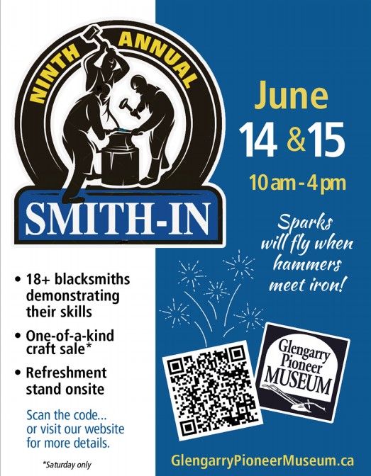 Sparks will fly when hammers meet iron! 18+ blacksmiths demonstrating their skills One-of-a-kind craft sale* Refreshment stand onsite GlengarryPioneerMuseum.ca |