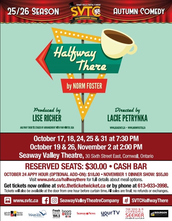Autumn Comedy: Halfway There by Norm Foster Reserved Seats: $30 - Cash Bar October 24 Happy Hour (Optional Add-On) $18 November 1 Dinner Show $55 Visit www.svtc.ca/halfwaythere for full details about meal options. Get tickets now online at svtc.theticketwicket.ca or by phone at 613-933-3998, Tickets will also be available at the door from one hour […]