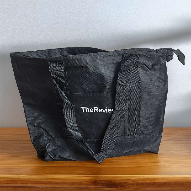 Black canvas tote bag featuring The Review logo. A practical and stylish way to support local journalism. Note: This item is available for pickup at The Review office in Vankleek Hill. Shipping is not included.