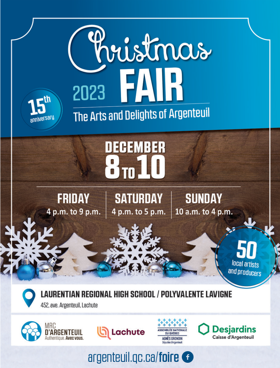 50 local artists and producers https://argenteuil.qc.ca/services/culture-loisirs-et-qualite-de-vie/arts-culture-et-patrimoine/foire-de-noel-saveurs-et-culture/