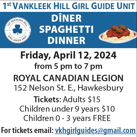 You’re invited to a SPAGHETTI DINNER FUNDRAISER April 12, 5 pm - 7 pm Royal Canadian Legion, 152 Nelson St E, Hawkesbury adults $10; children $5 (under 10 yrs.) In support for Joey Desjardins