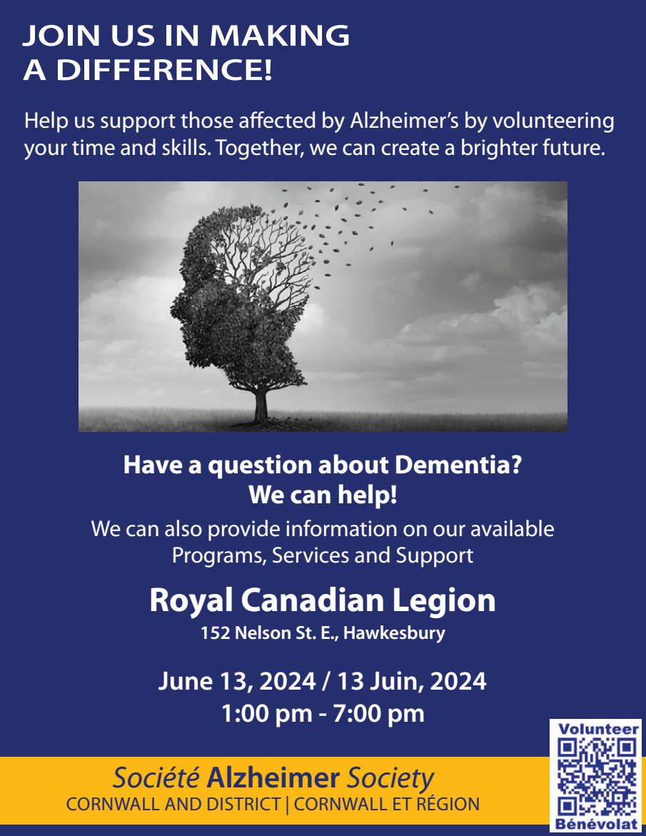 Cornwall and District Alzheimer Society JOIN US IN MAKING A DIFFERENCE!Help us support those affected by Alzheimer’s by volunteering your time and skills. Together, we can create a brighter future. Have a question about Dementia? We can help! We can also provide information on our available Programs, Services and Support