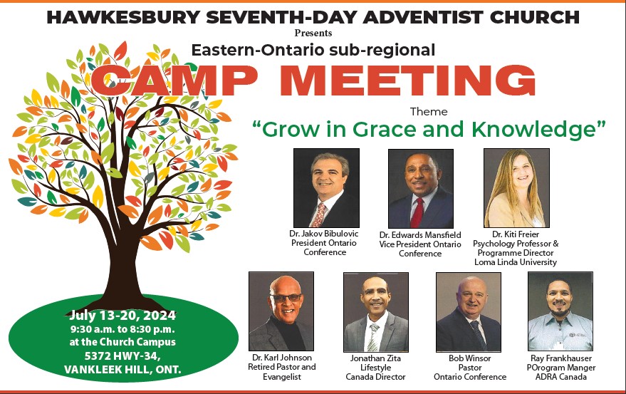 Seventh Day Adventist Church 5372 hwy 34, Vankleek HillHawkesbury Seventh-Day Adventist Church Present the Eastern-Ontario sub-regional camp meeting. Theme: Grow in Grace and Knowledge